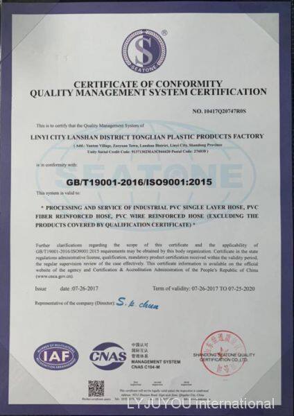Linyi Juyou international trade Co., Ltd была основана в 2018 году на базе нашего собственного завода - завода пластиковых изделий Tonglian в Линьи. Наш завод расположен на втором по величине товарном рынке в Китае и имеет более 20-летний опыт производства пластиковых и резиновых шлангов. Его площадь составляет 6000 квадратных метров, есть 25 производственных линий и современное оборудование для контроля качества. Ежегодный выпуск превышает 5000 тонн.